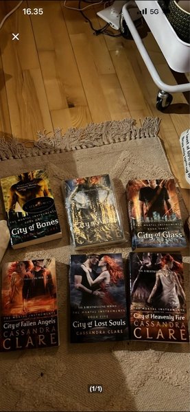 Komplet sæt af The Mortal Instruments serien af Cassandra Clare. Sættet indeholder: City of Bones, City of Ashes, City of Glass, City of Fallen Angels, City of Lost Souls og City of Heavenly Fire.