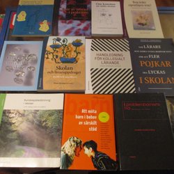Inbundna, och häftade, en med namn, tre utan skyddsomslag, några med smånagg i pärmen, en med spricka i bokryggen, ett par med smårevor i skyddsomslaget en utgallrad biblioteksbok, annars fint skick.