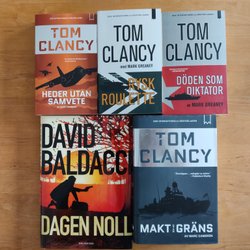 Säljer fyra Tom Clancy böcker: Red Rabbit, Rött Hot, Net Force och Net Force Hidden Agendas.