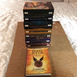 Komplett samling av Harry Potter-böckerna. Inkluderar titlarna: Harry Potter and the Deathly Hallows, Harry Potter and the Order of the Phoenix, Harry Potter and the Half-Blood Prince, Harry Potter and the Prisoner of Azkaban, Harry Potter and the Goblet of Fire och Harry Potter and the Cursed Child.