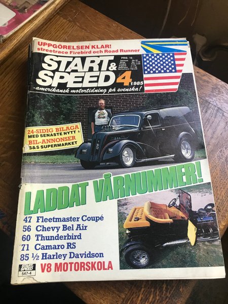 Tidningen Start & Speed nummer 4 från 1985. Innehåller artiklar om Fleetmaster Coupé, Chevy Bel Air, Thunderbird, Camaro RS och Harley Davidson. Med en 24-sidig bilaga med de senaste bilnyheterna och bilannonserna.