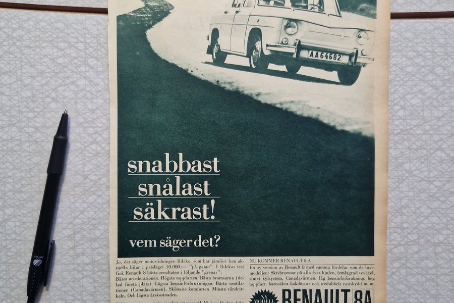Renault 8A annons/reklam 1963