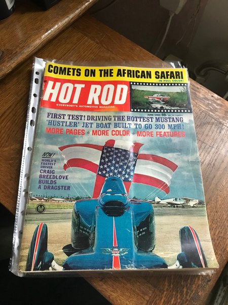 Hot Rod tidning från juni 1964. Innehåller artiklar om 'Hustler' jetbåt byggd för att gå 300 mph och Craig Breedlove bygger en dragster.