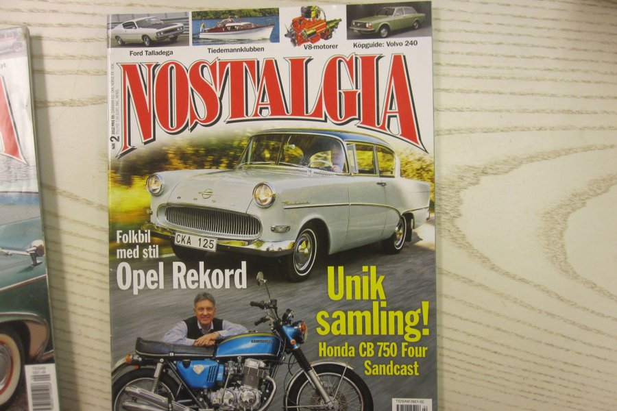 Tidningen Nostalgia, nummer 2 från 2012. Innehåller artiklar om Ford Talladega, Tiedemannklubben, V8-motorer, köpguide för Volvo 240, Opel Rekord och en unik samling av Honda CB 750 Four Sandcast. Pris: 59 SEK, Danmark 62 DKK, Norge 69 NOK, Finland 7,50 EUR.