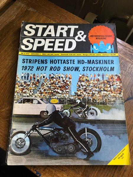 Tidning Start & Speed från 1972. Innehåller reportage om "Stripens Hottaste HD-Maskiner" och "1972 Hot Rod Show, Stockholm".