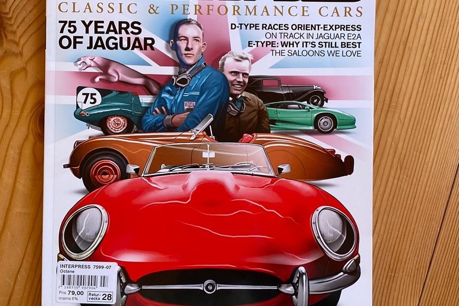 Tidningen Octane Classic & Performance Cars, utgåva 85 från juli 2010. Denna utgåva firar 75 år av Jaguar och innehåller artiklar om D-Type, E-Type och salonger. Dessutom finns reportage om en Bugatti värd 35 miljoner dollar, hur man köper en Maserati Biturbo, Walter Röhrl, Bentley Mulsanne & 8 Litre, racing för 1000 pund, Cheetah: 200mph Cobra-Beater och New Morgan.