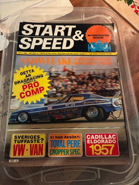 Tidningen Start & Speed från 1980. Innehåller artiklar om dragracing, VW-Van, Total Perf. Chopper Spec. och Cadillac Eldorado 1957.