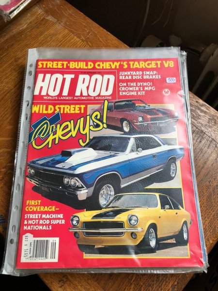 Hot Rod tidning från September 1981 med fokus på "Wild Street Chevys!". Inkluderar artiklar om "Street-Build Chevy's Target V8", "Junkyard Swap: Rear Disc Brakes", och "On the Dyno! Crower's MPG Engine Kit".