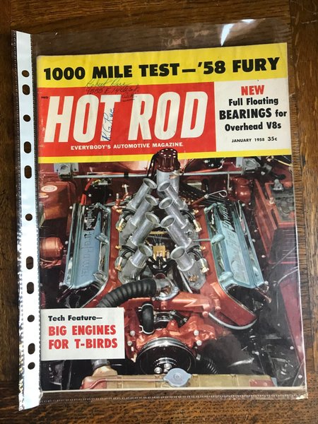 En klassisk utgåva av Hot Rod magazine från januari 1958. Innehåller artiklar om "1000 Mile Test - '58 Fury" och "Big Engines for T-Birds".