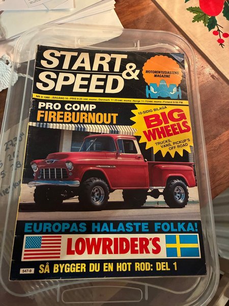 Tidningen Start & Speed från 1980. Innehåller artiklar om bilar, lastbilar, vans, pickuper, off road och lowriders.