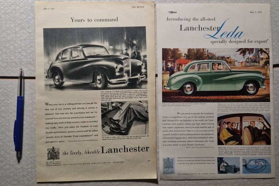 Lanchester x2 reklam/annons 1952