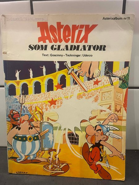 Asterixalbum nr 11, "Asterix som Gladiator". Text av Goscinny och teckningar av Uderzo.