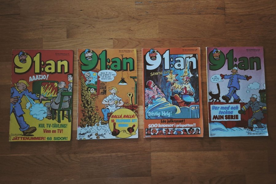 Fyra 91:an tidningar nr 24 från 1972, nr 16 från 1973, nr 2 från 1974 och nr 25 från 1975. Tidningarna har olika teman som jul och tävlingar.