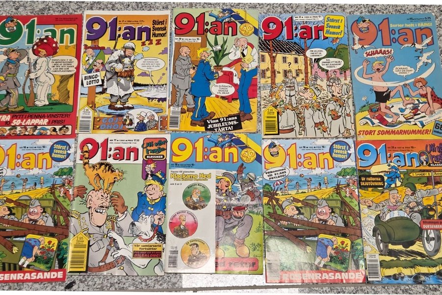 Ett parti med 91:an tidningar från olika år. Innehåller nummer från 1974, 1979, 1992, 1993, 1994, 1995 och 1997. Tidningarna har varierande teman och omslag.