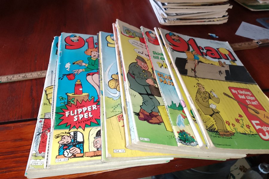 Ett parti med blandade 91:an-tidningar.