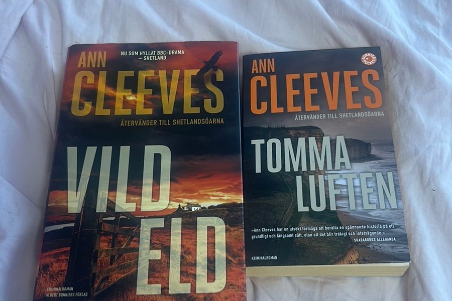 Kriminalromanen "Vild Eld" av Ann Cleeves. Boken är en del av Shetlandsserien, som även har blivit ett hyllat BBC-drama. Förlag: Albert Bonniers Förlag.