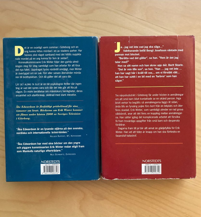 Två spännande kriminalromaner av Åke Edwardson: "Låt det aldrig ta slut" och "Himlen är en plats på jorden".