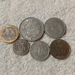 Samling av franska valörer med olika årtal och värden. Inkluderar valörer från 1966, 1968, 1970, 1972, 1974, 1976, 1989 och 1991. Värdena inkluderar 1 Franc, 5 Franc, 10 Franc och 20 Centimes.