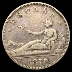 - Silver peseta-mynt från 1800-talet, när Spanien såg några av sina mest turbulenta tider.
