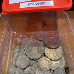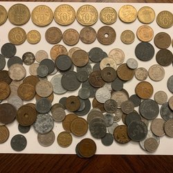 Samling av spanska pengar. Årtal och valörer varierar.