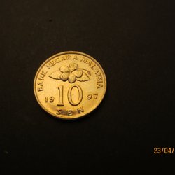 Ett brittiskt mynt från 1992 med ett värde av 10 pence. Framsidan visar Drottning Elizabeth II och baksidan visar ett lejon med en krona.