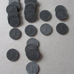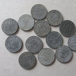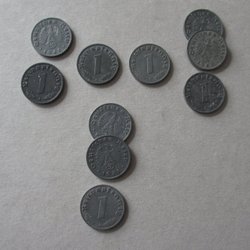 2Mark 1971 o 1983, 1 Mark 1991, 10 pfenning 1950,88,89,90,90 och 1 pfenning 1981