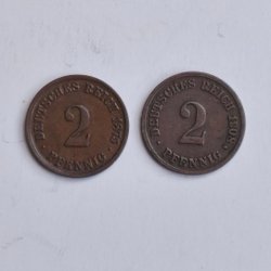 Parti med tyska mynt. Innehåller mynt med valörerna 50 Pfennig, 10 Pfennig, 5 Pfennig och 1 Pfennig. Årtal inkluderar 1924, 1939, 1923, 1922 och 1938.