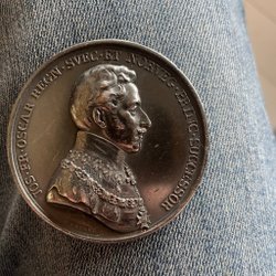 Myntet på bilden är ett österrikiskt 25 schilling-mynt i silver. Det är ett jubileumsmynt präglat 1973 för att fira 100-årsminnet av teaterregissören Max Reinhardts födelse [1, 2].