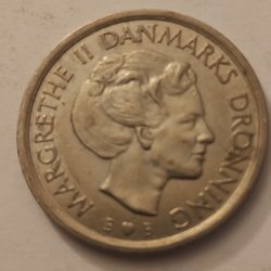 • Margrethe II: nutida mynt med Danmarks nuvarande drottning.