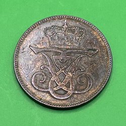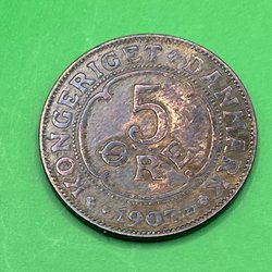 En dansk 5 øre fra 1962. Mønten har Kong Frederik IX's monogram på forsiden.