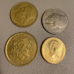 Tre danska kronor. Inkluderar valörer från 1994, 1997 och 2002. 2st 2 kronor och 1st 1 krona.