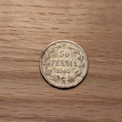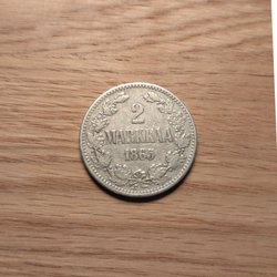 Finsk Silvermynt från 1865 - 2 Markkaa