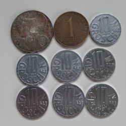 10 kronor 6 st. 1984,6 st. 5 kronor 1981-1984, 13 st. 1 krona 1981-1984 , 1 st. 50 aurar 1981 och 1 st. 1 aurar 1981.