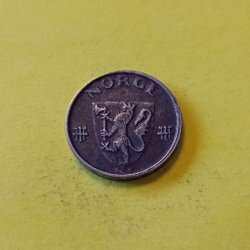 Ett 1 Öre mynt från Norge 1943. Perfekt för samlaren eller den historieintresserade.