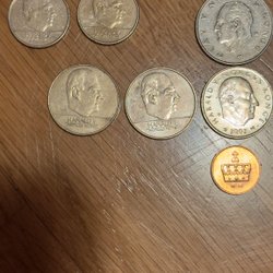 Samling av norska mynt som präglades mellan 1958- 1973