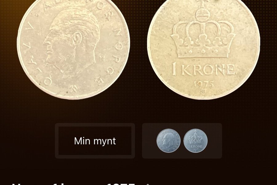 En norsk 1 krone från 1975. Fråga om fler bilder om det behövs! Säljer också fler mynt som jag kan samfrakta. Kan skicka med försäkring och spårning om det önskas.