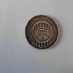 Detta är en Skilling Courant från 1810. Föremålet har en präglad kunglig monogram med "R VI" under en krona på ena sidan. Den andra sidan visar texten "1 SKILLING COURANT" och årtalet "1810" med korsade hammare under.