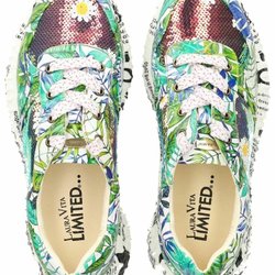 Elegant svart kuvertväska med en unik design. Väskan har en kombination av olika texturer och mönster, glitter och tweed och läder.