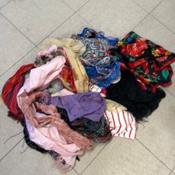 Stor sjal/duk i blankt glansigt tyg.