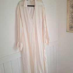 Två fina, tvättade och i stort sett oanvända långa sjalar i ett paket. En fluffig och fin cremefärgad sjal med geometriskt tryck, skimmrande guld effekt i 100% polyester från Lindex, ca 200 cm x 65 cm exkl frans.