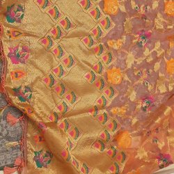 stickad sjal med ett intressant mönster. Sjalen har en rak passform.