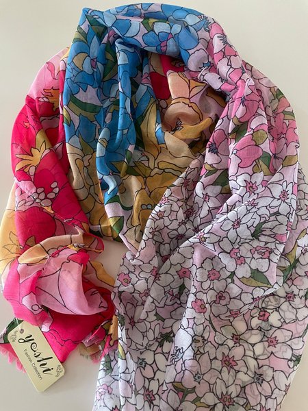 En mjuk, skir och följsam sjal som har ett fint mönster av blommor