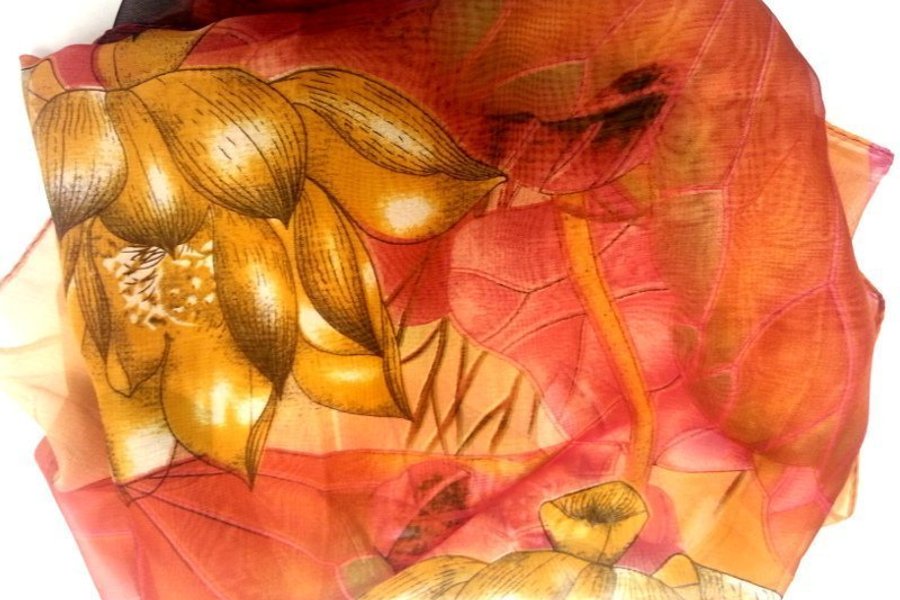Blommig sjal, orange