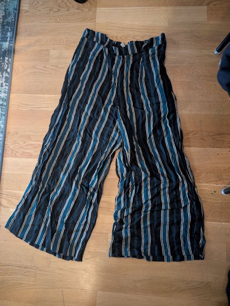 Ett par randiga culottes med resår i midjan. Byxorna har ett avslappnat och ledigt utseende. Pull&Bear, storl. L.