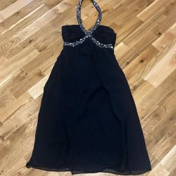 Ett par mörkblå snygga shorts med två knappar framtill och fickor både bak och fram.