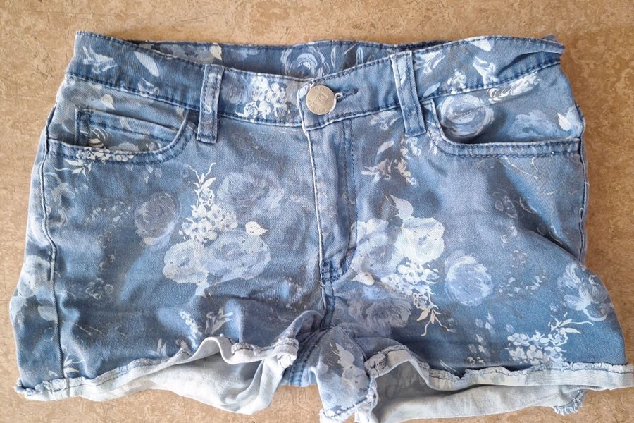 Fina ljusblå shorts med blommönster. Shortsen har en klassisk design med fickor fram och bak.