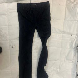 Ett par svarta byxor med hög midja och utsvängda ben .