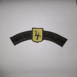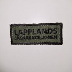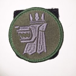 Vävnadsemblem med Vännäs kommunvapen. Vapnet är indelat i ett rutmönster i rött och gult, med sex kugghjul placerade i rutorna. Ovanför vapnet står det "VÄNNÄS" i vita bokstäver.