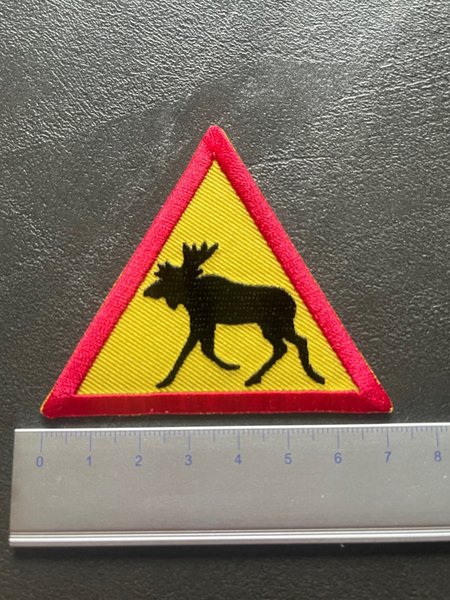 Varning för älg tygmärke