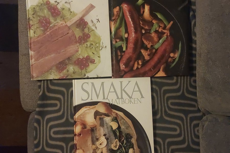 Tre böcker från kokboks-serien "Smaka Matboken". 1, 2 och 3. Bilderna visar exempel på recept från böckerna. ISBN saknas.